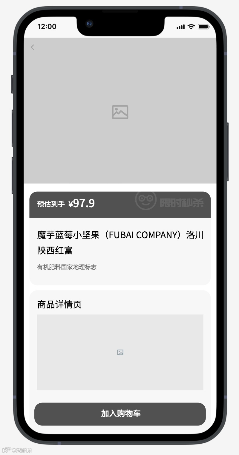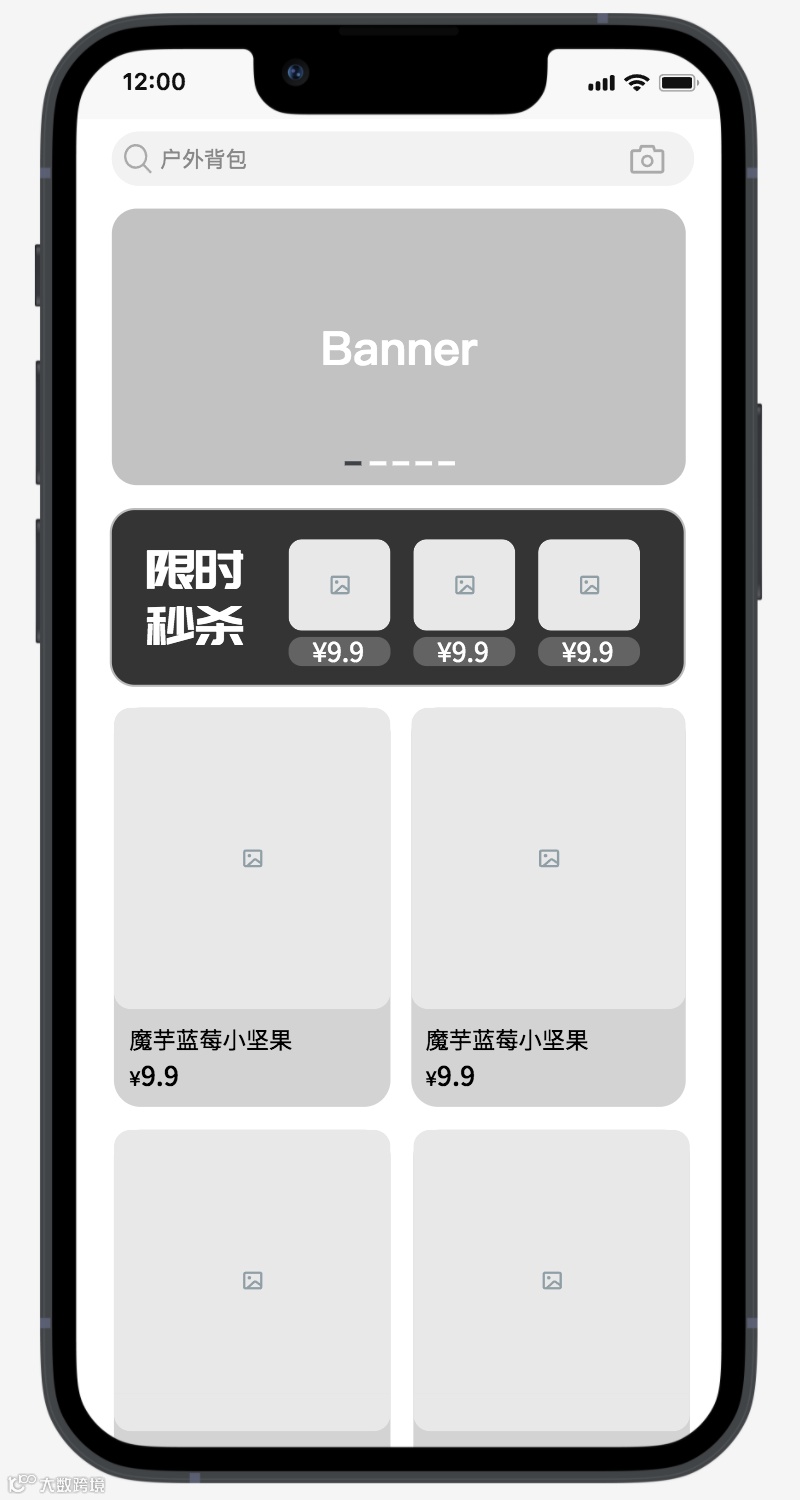 终端原型图:选择几个核心的APP端页面,包括首页活动区、活动列表页、商品详情页;
