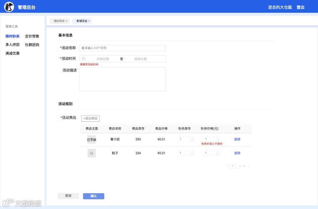 本文核心是针对限时秒杀这种营销工具,做了前后端功能创建的简单说明,并未围绕“营销”这个话题展开描述,当然营销不单单是某一个营销工具的使用,营销工具也非简单的操作手册中的介绍,学会操作并非学会使用。产品需要了解市场、了解业务、了解数据应该是毋庸置疑的,否则就会变成一个单纯的PRD生产机器。