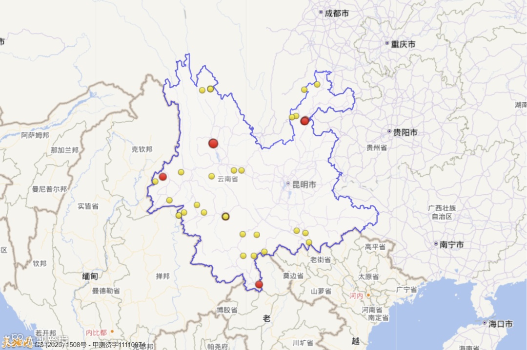 2025年,云南共发生三级以上地震48次,其中3.0到3.9级40次,4.0到4.9级7次,5.0到5.9级1次,最大地震是6月5日在云南大理州洱源县发生的5.0级地震。12月,云南共发生三级以上地震3次。
