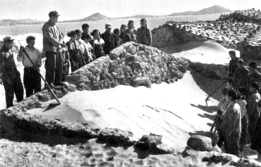 谷文昌在山口村察看风沙灾情,与当地群众一起探讨治沙良策。图源:《谷文昌精神读本》