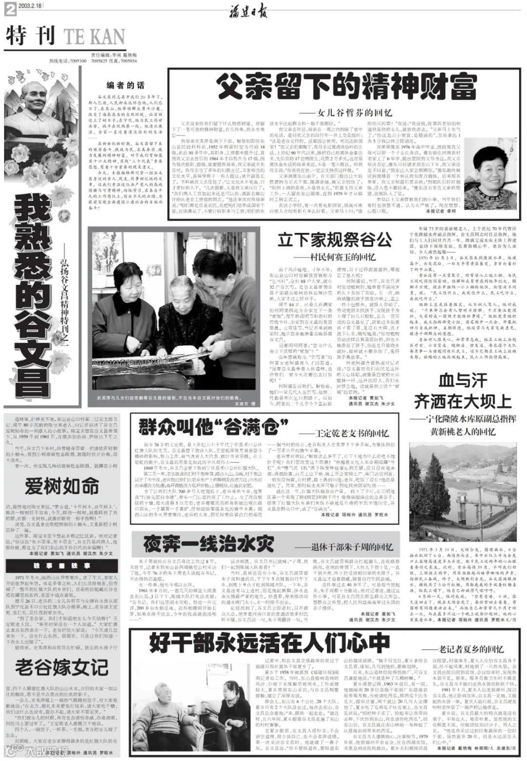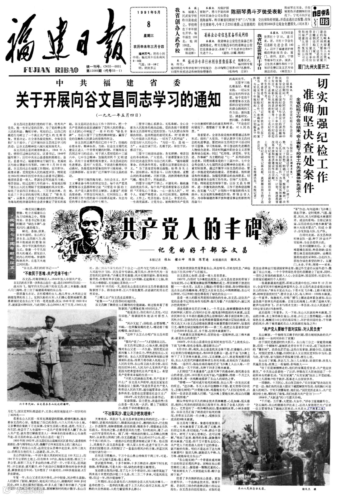 从20世纪80年代开始,福建日报先后多次对谷文昌的先进事迹作了大规模报道,掀起了全省干部群众学习谷文昌精神的阵阵高潮。