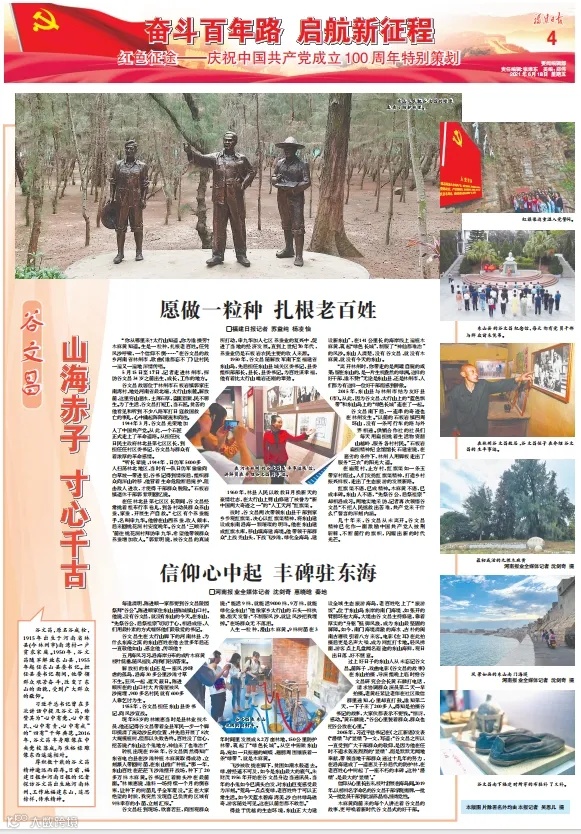 谷文昌同志1949年8月随部队南下福建,在东山县工作14年、担任县委书记10年。