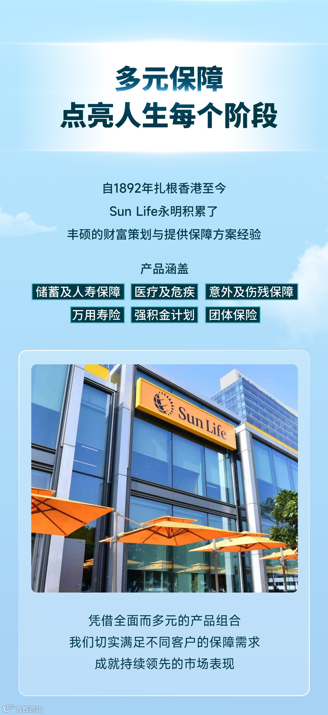 此微信公众号/本文章所有资料只作为一般参考之用,所有资料并非任何形式之保证或专业意见,既不构成任何推荐、提议或请求(无论是投资或其他决定),亦不可作为任何协议出售或购买任何产品的根据。香港永明金融有限公司(“Sun Life永明”) 不对上述资料的准确性和可靠性所导致的后果负责。Sun Life永明一概不因他人使用或诠释以上之任何资料而承担任何责任。本文章旨在香港派发,并不能诠释为在香港境外提呈销售、游说购买或提供任何Sun Life永明的产品。投资涉及风险。阁下在做出任何投资选择前,应考虑个人可承受的风险程度及财务状况。在选择保险产品时,如阁下对某保险产品是否适合自己存在疑问(包括是否符合阁下的投资目标),阁下应寻求独立财务及/或专业意见,并须考虑个人情况而作出最适合自己的保险产品选择。