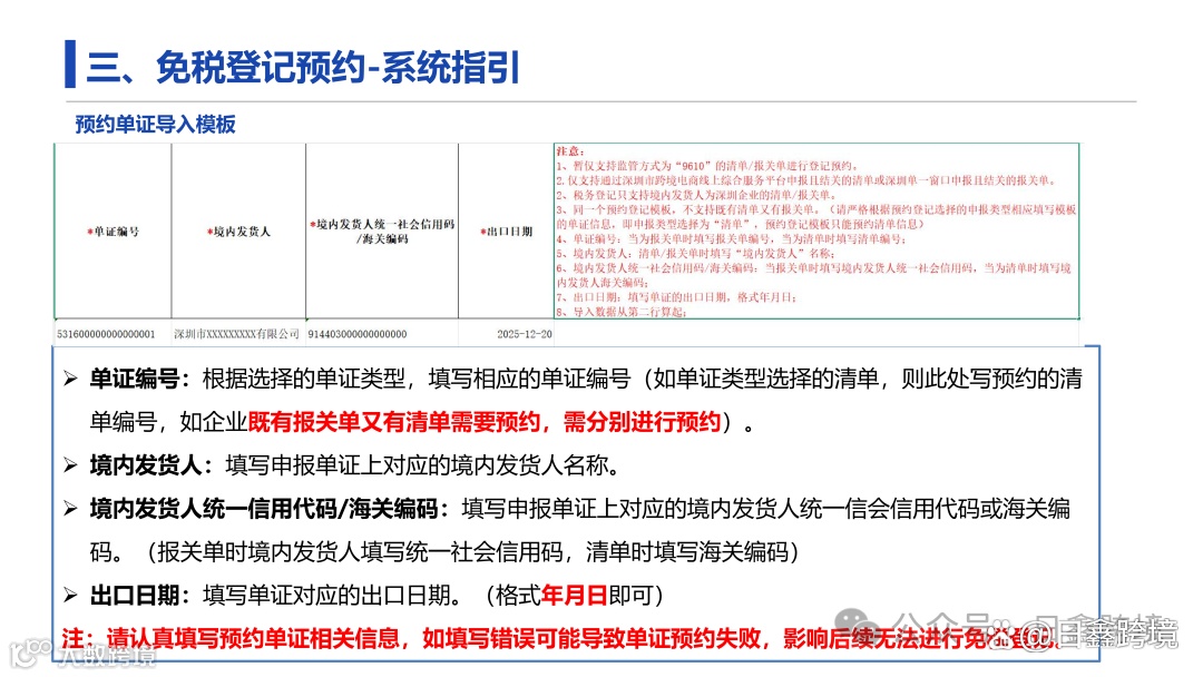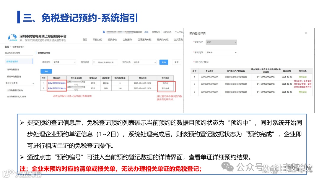 数据确认与登记:预约1-2日后,根据系统推送的预约单证数据,完成报关单/清单的免税登记操作。