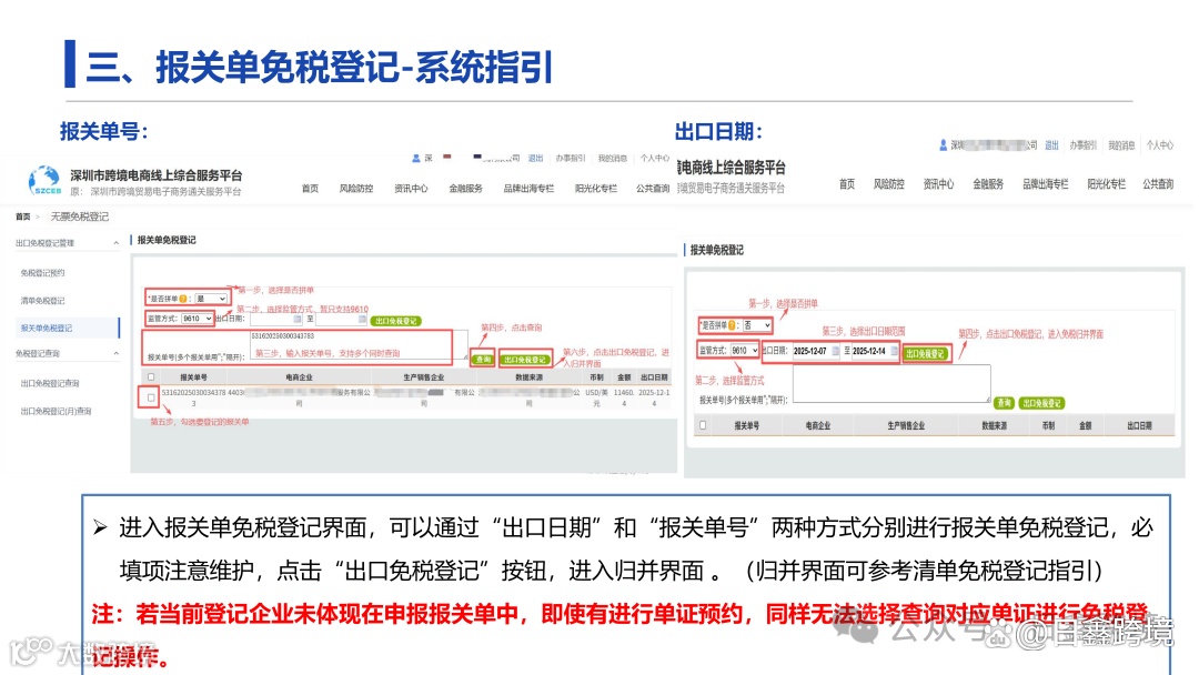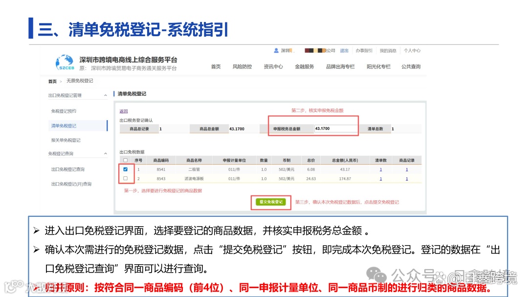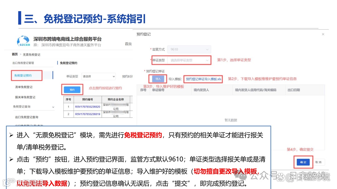 企业需通过深圳市跨境电商线上综合服务平台(https://www.szceb.cn/)办理“无票免税”登记,实现全流程电子化操作。