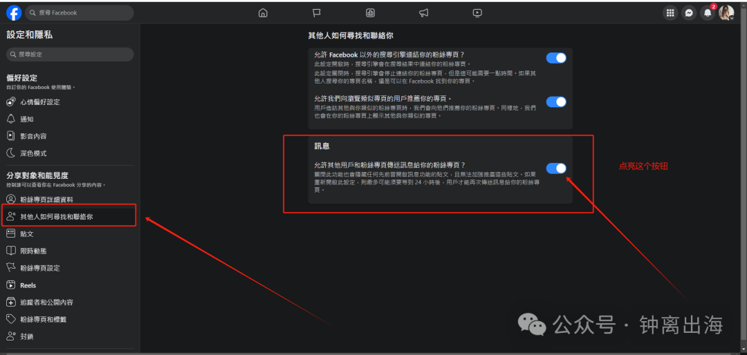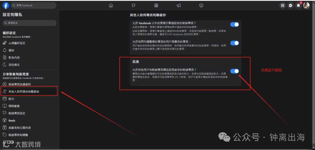 2.点击其他人如何寻找和联络你,然后点亮框起来的按钮