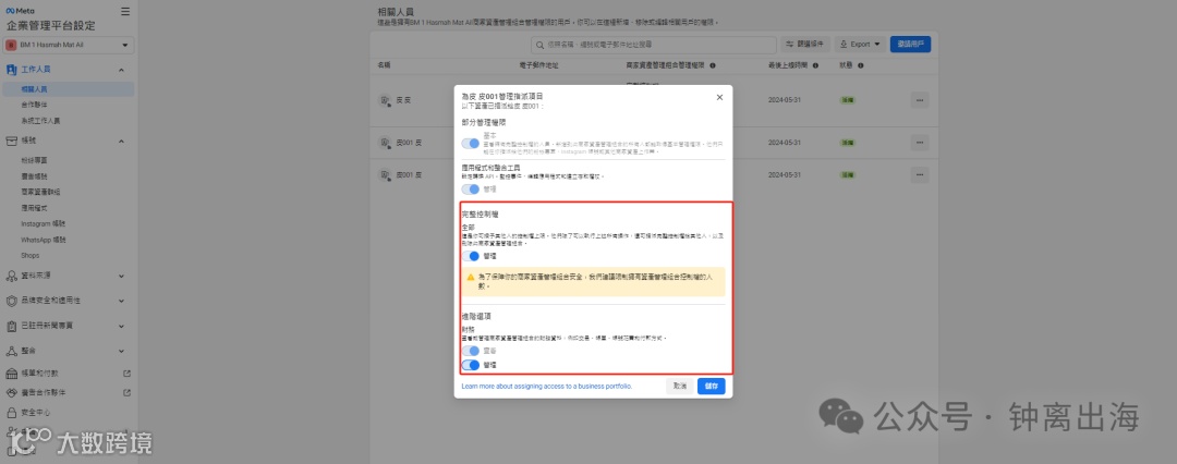 总结:拉管理员的时候权限给最低的权限,这样更容易接入,不会弹出红色的字体提示你无法接入,风控的情况下,接入的时候就很容易死,接入后再去BM加管理员权限,这样不容易触发Facebook风控。