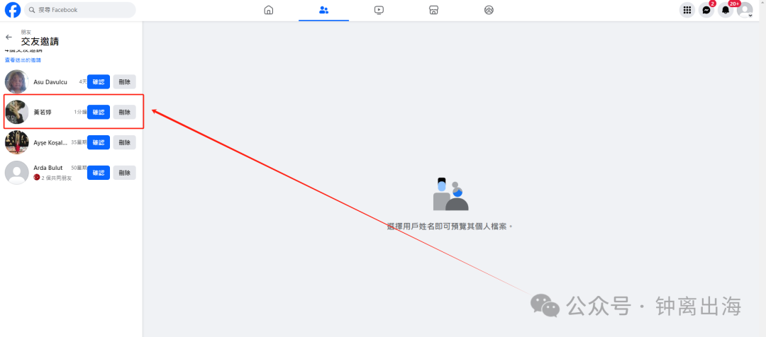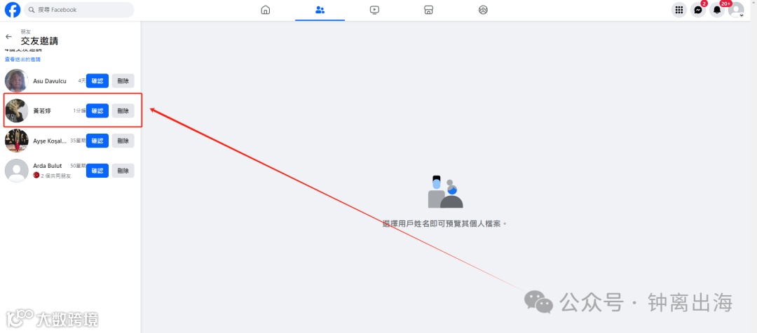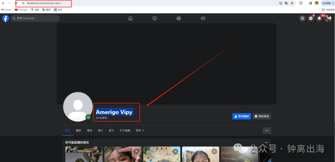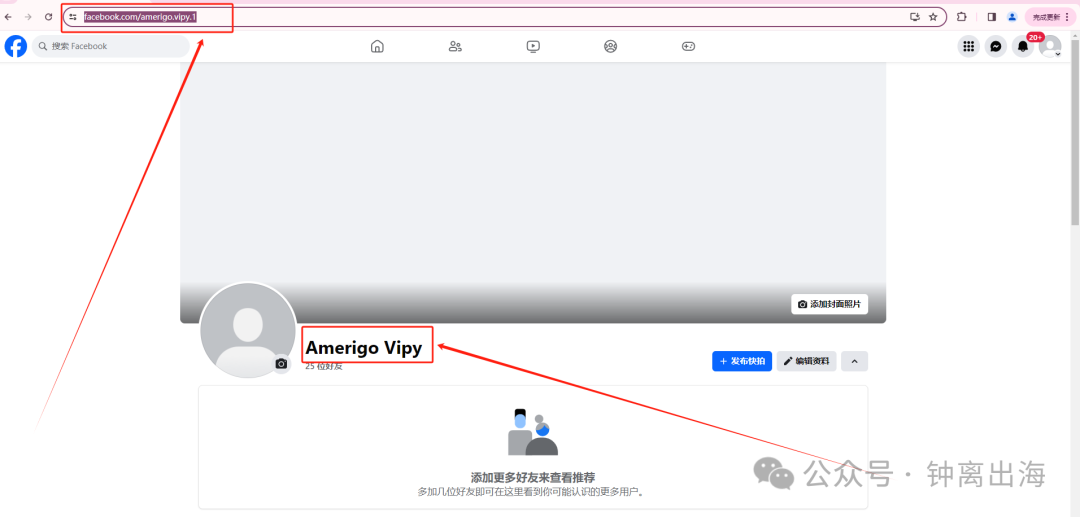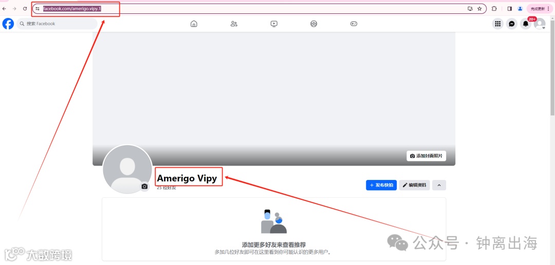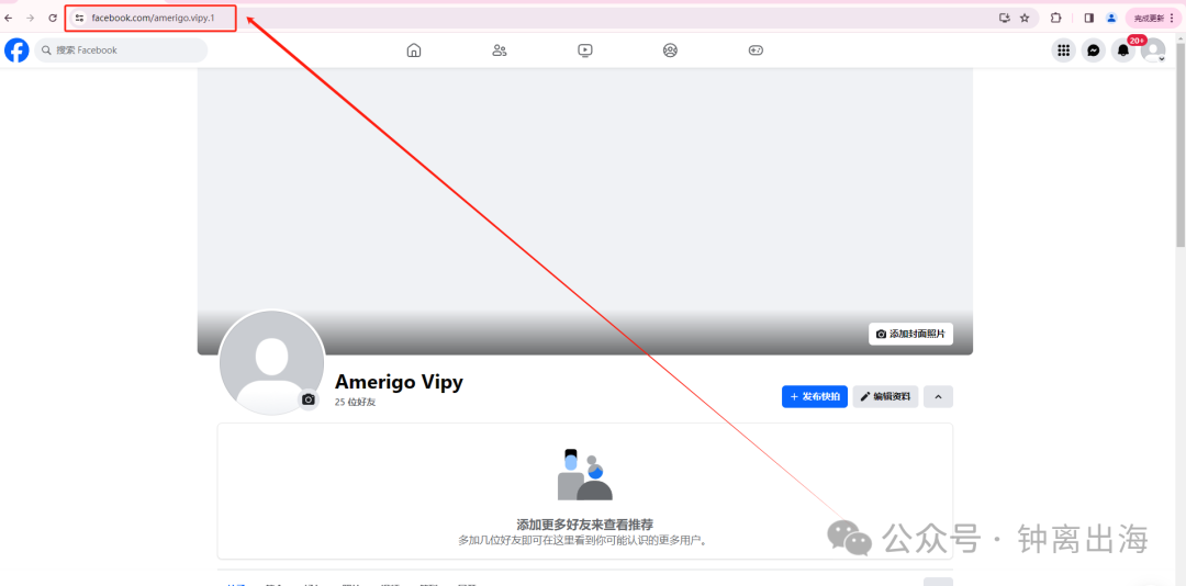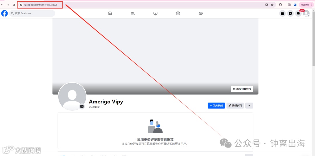 4.把个人号链接在有个人广告账户的浏览器上打开,然后加好友