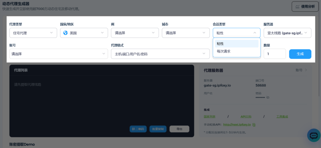 - 粘性会话:适用于持续监控特定商户的评分、评价变化,或进行多步骤复杂搜索时,能在设定时间内保持同一IP,避免任务中断。
