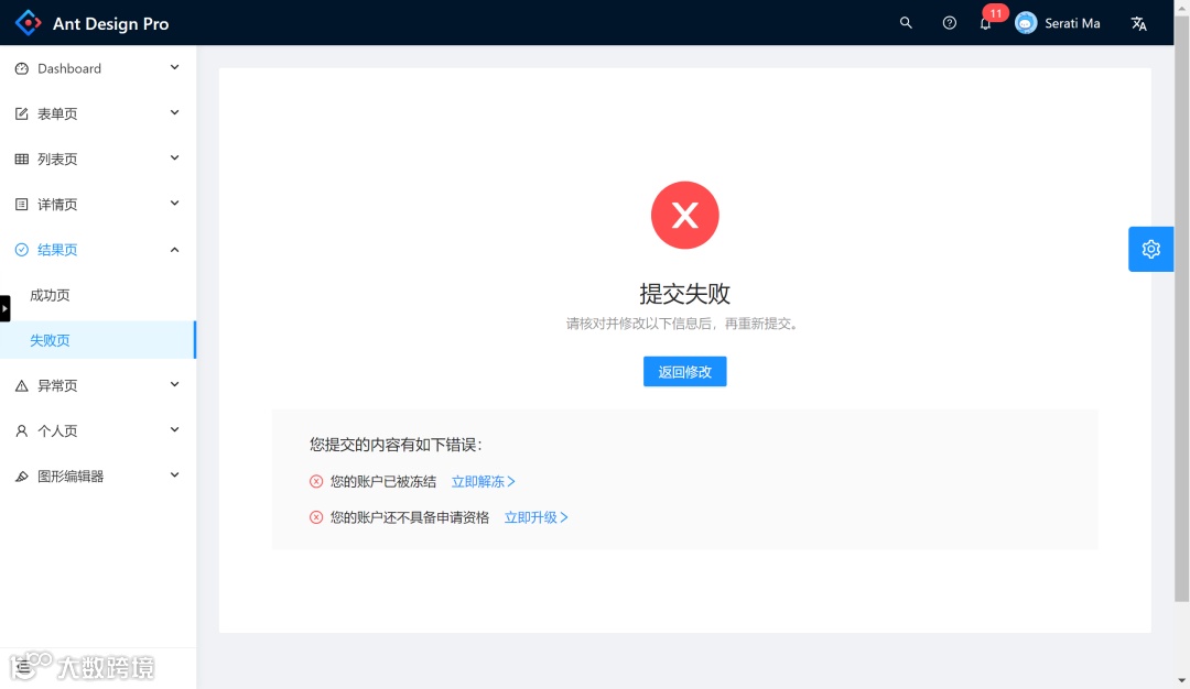 当用户进行系统操作后,无论成功还是失败,系统都需要给予反馈。常件的操作反馈形式有:toast、表单错误校验、模态弹窗、独占式页面。