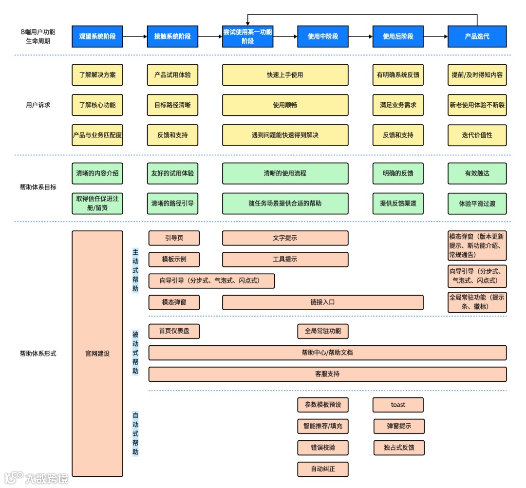 体系化的帮助是通过在B端用户功能生命周期的不同阶段提供差异化的引导及反馈,助力用户在应用中成长。