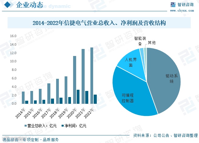 信捷电气是国内工控领域领先企业,深耕行业二十余年,产品覆盖控制层(PLC、HMI)、驱动执行层(伺服、变频器)和感知层(机器视觉),并提供行业智能控制系统解决方案。2022年公司实现营收13.35亿元,净利润2.22亿元。其中,人机界面业务收入1.85亿元,占总营收13.83%。