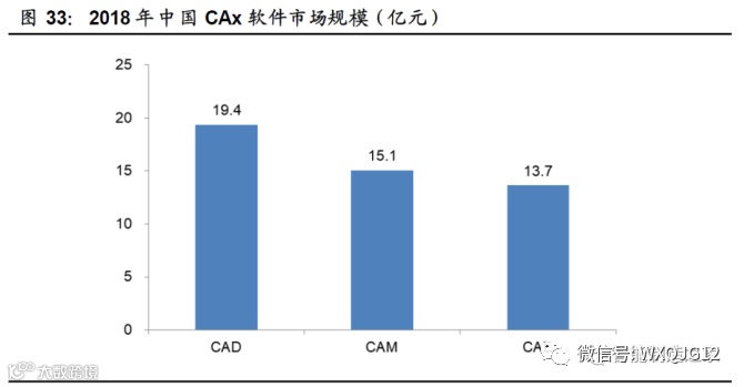 2018年中国CAD、CAM、CAE合计市场规模约48.1亿元。Autodesk主导2D市场,达索系统、西门子在3D领域领先。中望软件是国内少数拥有自主3D内核的企业,技术壁垒高。