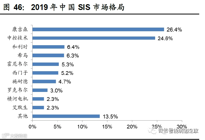 2019年中国DCS市场规模87.4亿元,中控技术市占率27%,连续九年第一;SIS市占率24.6%,排名第二;APC市占率26%,居首位。
