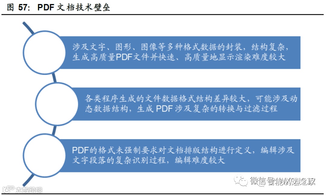 PDF格式具备跨平台一致性、文件体积小、功能丰富等优势,技术门槛高,全球仅少数企业掌握完整技术链。Adobe为行业开创者,2019年PDF业务收入12.25亿美元。