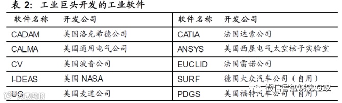 - 研发设计类:如CAD、CAE、PLM,代表企业有达索系统、Autodesk、中望软件;