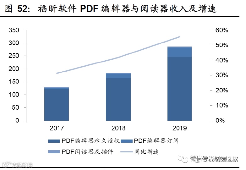 2019年营收3.69亿元,同比增长31.35%;净利润7414万元,同比增长92.62%。核心产品PDF编辑器与阅读器贡献77.7%收入,其中订阅收入同比增长100%,体现云转型成效。