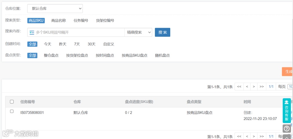 盘点单的创建: