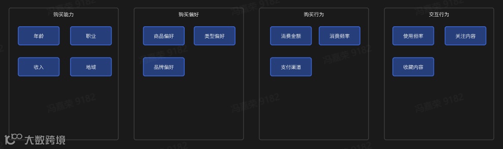 我们可能会看的收入、年龄、地域等信息。更重要的是要看他的购买偏好,包括商品偏好、品牌偏好、类型偏好等,了解他更有可能购买哪些产品。