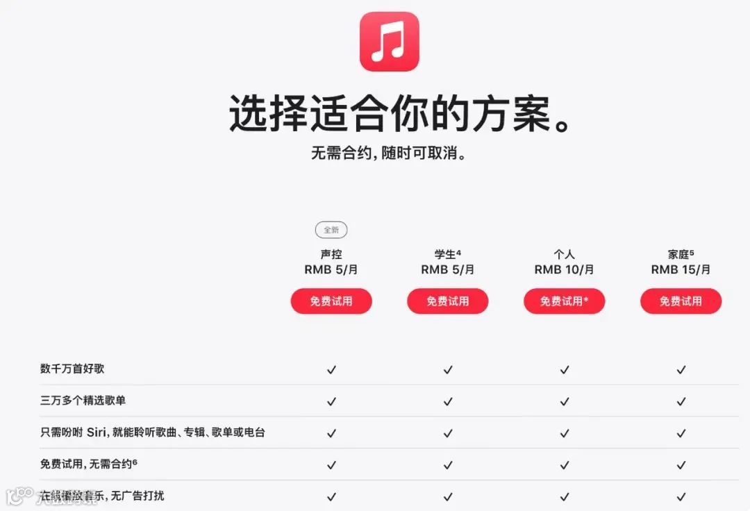 众所周知,苹果已经为 Apple Music 推出了多个订阅套餐,包括 10元/月 的 个人订阅、15元/月 的家庭订阅、100元/年的个人年度订阅 以及最便宜的 5元/月大学生订阅 以及 5元/月的声控月度订阅。而近日,苹果官网宣布,从 11 月开始,苹果将停止 Apple Music 5元/月的声控方案订阅,这意味着面向个人用户最便宜的月套餐要没了。目前正在订阅该服务的用户仍然可以在当前计费周期内正常使用,但自动续订将被关闭,今后只能选择切换至其他更贵的套餐了。Apple Music 声控方案是苹果在 2021 年底宣布,随后便在 iOS 15.2 正式版中上线一项听歌服务。订阅该声控方案后,用户仅支持通过呼唤 Siri 播放 Apple Music 中的音乐,最适合 HomePod 用户,但很多 iPhone 用户为了省钱,也可能会开通该服务。现在很多音乐APP都是要收费才能听歌,Apple Music也不例外。不过苹果在国内也有比较良心的一面,比如国外的声控订阅是 5 美元/月(约 36.5 元/元),比国内贵了 7 倍多。此外,苹果还会不定时推出一些免费活动,比如你是 Apple Music新用户,首次使用可以免费领取三个月的Apple Music会员。而不在订阅状态老用户,则可以领取 2 个月的会员。不过需要注意的是,免费领取的用户,要记得及时取消订阅,防止到期后自动续费。