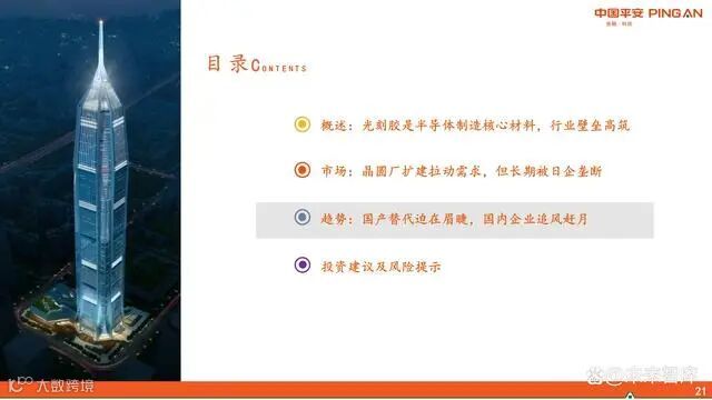 尽管全球晶圆厂扩产带动需求增长,中国市场潜力巨大,但中高端光刻胶市场仍被日本企业高度垄断。当前国内光刻胶国产化率偏低,且集中在低端领域,技术水平与国际先进差距明显。