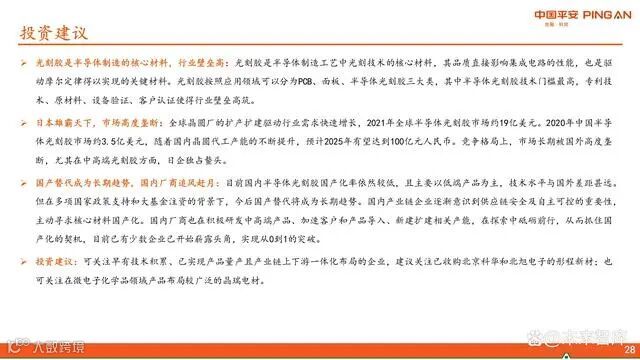 国家大基金一期已投资晶瑞电材等企业,二期进一步聚焦半导体材料领域,如参与南大光电定增,体现对关键材料的扶持决心。2019年日本限制向韩国出口光刻胶,警示我国供应链风险。由于光刻胶保质期通常不足六个月,难以囤货,一旦断供可能导致产线停摆。