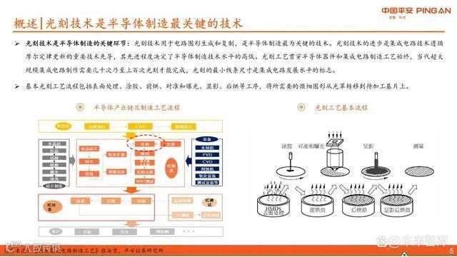 光刻技术是半导体制造中最关键的工艺之一,贯穿集成电路生产的全过程。现代大规模集成电路需经历数十至百次光刻工序,最小线条尺寸代表了芯片制程水平。基本流程包括表面处理、涂胶、前烘、对准曝光、显影及后烘,将设计图形从光罩精确转移到基片上。