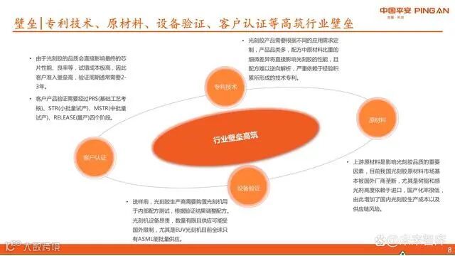 光刻胶是决定集成电路性能的核心材料,也是实现摩尔定律的关键支撑。其技术门槛体现在专利壁垒、原材料控制、设备验证与客户认证等多个环节,行业护城河深厚。