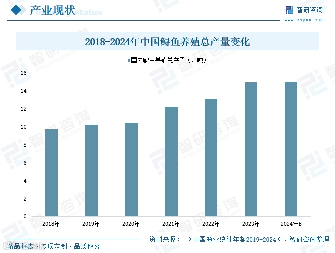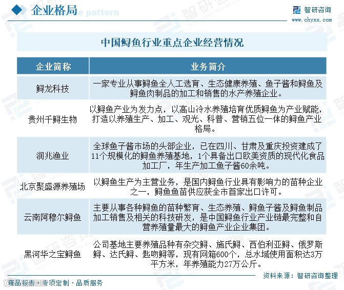 我国鲟鱼行业竞争日趋激烈,涌现出一批龙头企业。鲟龙科技、四川润兆渔业等企业引领行业发展。润兆渔业已建成11个规模化养殖基地和1个具备欧美出口资质的现代化加工厂,掌握多项核心技术,获多项专利,持续推进“企业+农户”全产业链布局,2024年鱼子酱产量超70吨,产能持续扩张。