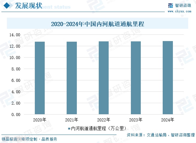 新中国成立初期,全国内河航道仅7.36万公里,高等级航道近乎为零。经过70多年发展,截至2022年底,内河航道里程已超12.8万公里,并在2023至2024年持续增长,通航里程居世界首位。但高等级航道通达范围有限、网络化程度不足,仍是制约高质量发展的瓶颈。