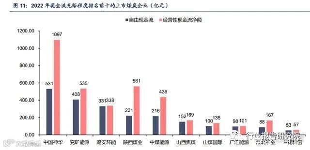 经营活动现金流为正、投资活动现金流为负、筹资活动现金流为负的企业,表明其依靠自身经营支撑扩张并回馈股东,具备可持续分红能力。2022年,在统计的20家上市煤企中,除山西焦化、盘江股份、美锦能源外,其余自由现金流均为正。