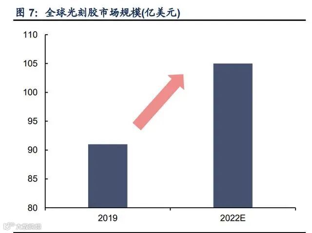 全球光刻胶市场稳步增长。据Cision数据,2019年市场规模为91亿美元,预计2022年达105亿美元,年复合增速5%。中国作为全球最大电子产品制造国,光刻胶需求持续扩张。SEMI数据显示,2015–2020年中国光刻胶市场规模从100亿元增至176亿元,年均复合增速达12.0%。