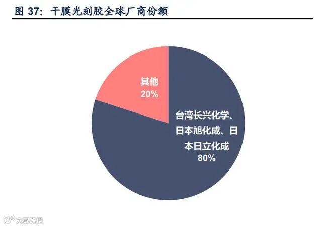 尽管中国拥有近半全球PCB产能,但光刻胶市场仍由日本主导。长兴化学、旭化成、日立化成三家企业占据干膜光刻胶超80%份额;太阳油墨一家即占全球阻焊油墨市场60%。