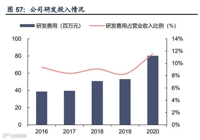 2016–2020年营收由5613万元增至8929万元,CAGR为12%。2021年上半年营收5647.83万元,同比增长46.74%。研发支出逐年上升,2020年达3780万元,占营收比例约40%。
