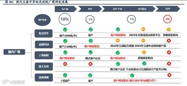 随着KrF客户拓展与ArF技术布局推进,国产光刻胶有望实现全面突破。