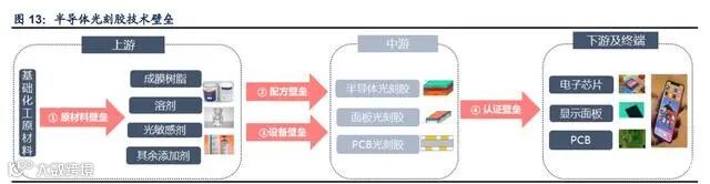 光刻胶产业链存在四大壁垒:原材料、配方、设备与认证。