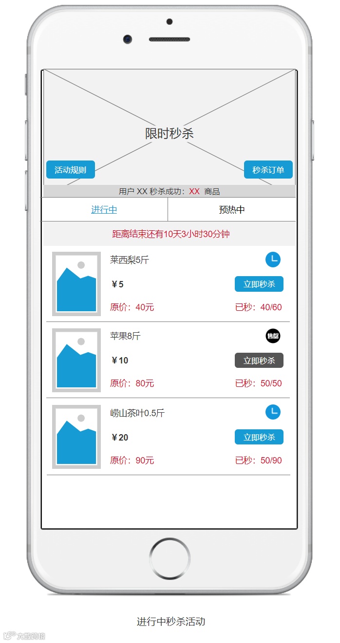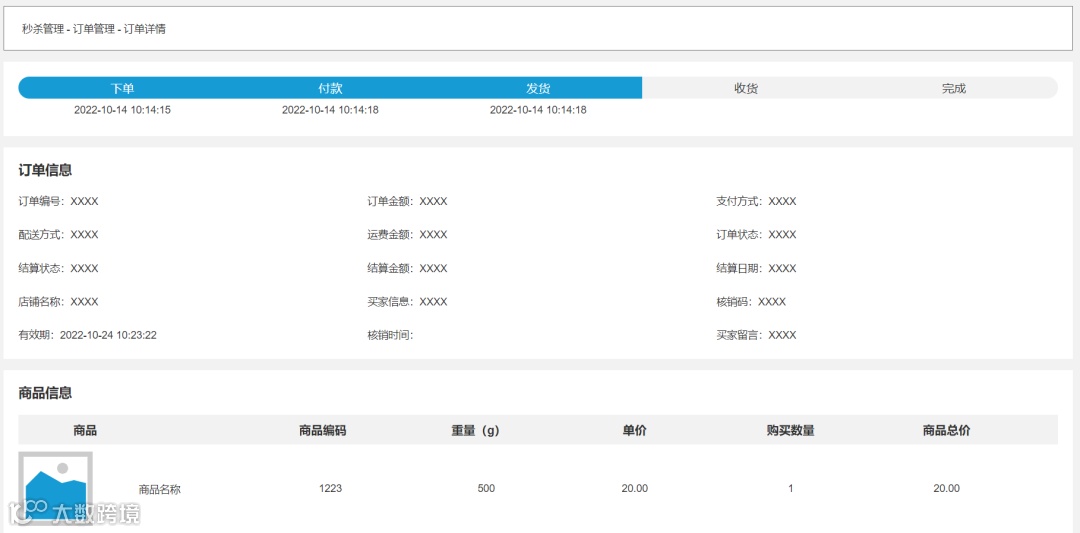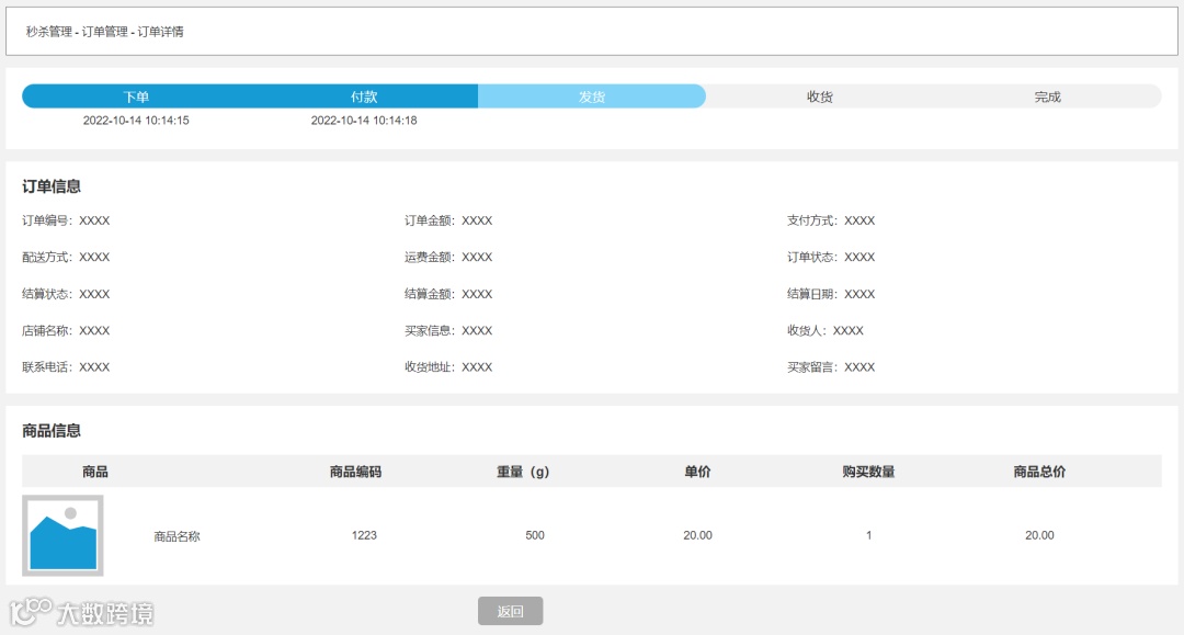 秒杀商品来源为平台商品,订单状态:待发货,可修改地址操作,并设置卖家备注信息;