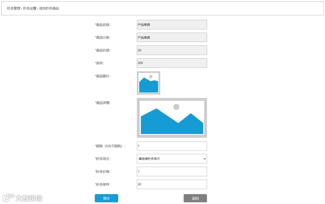 秒杀场次为下拉菜单,下拉菜单内容为未开始的秒杀活动时间(秒杀活动开始时间和秒杀活动结束时间拼接);