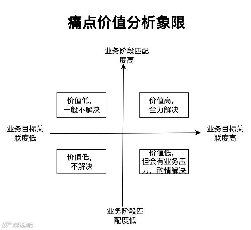 痛点分析是一个自下而上的过程,要先充分挖掘各环节痛点,再进行一定程度的抽象,避免想当然和经验主义。