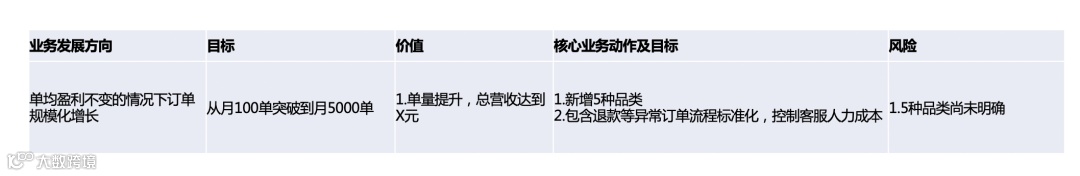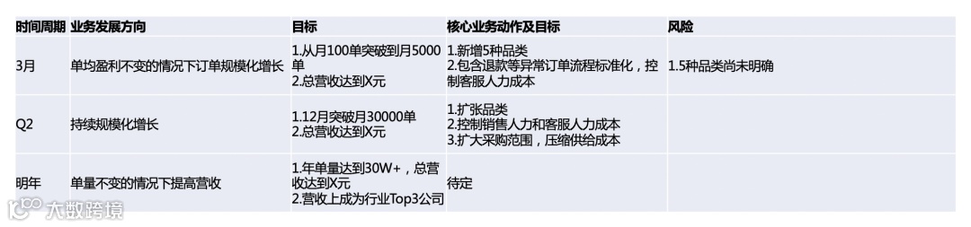 基于上图,我们会得出一个表格,来表达下个阶段业务的变化。、