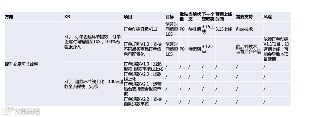 有了方向后,我们要给每个方向制定目标,以使执行动作聚焦和执行结果可衡量。