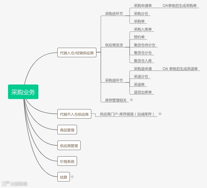 代销入仓/经销商家,由采购部门向商家下采购申请单。