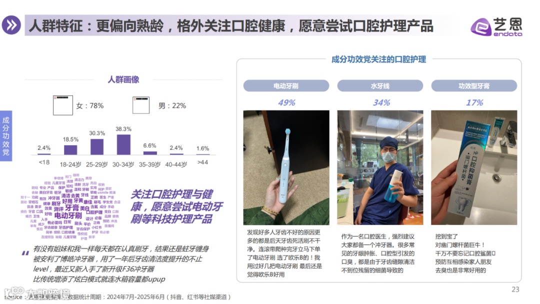 理性决策,关注配方安全性与科学依据,青睐含氟、羟基磷灰石、益生菌等活性成分,强调长期口腔健康管理。