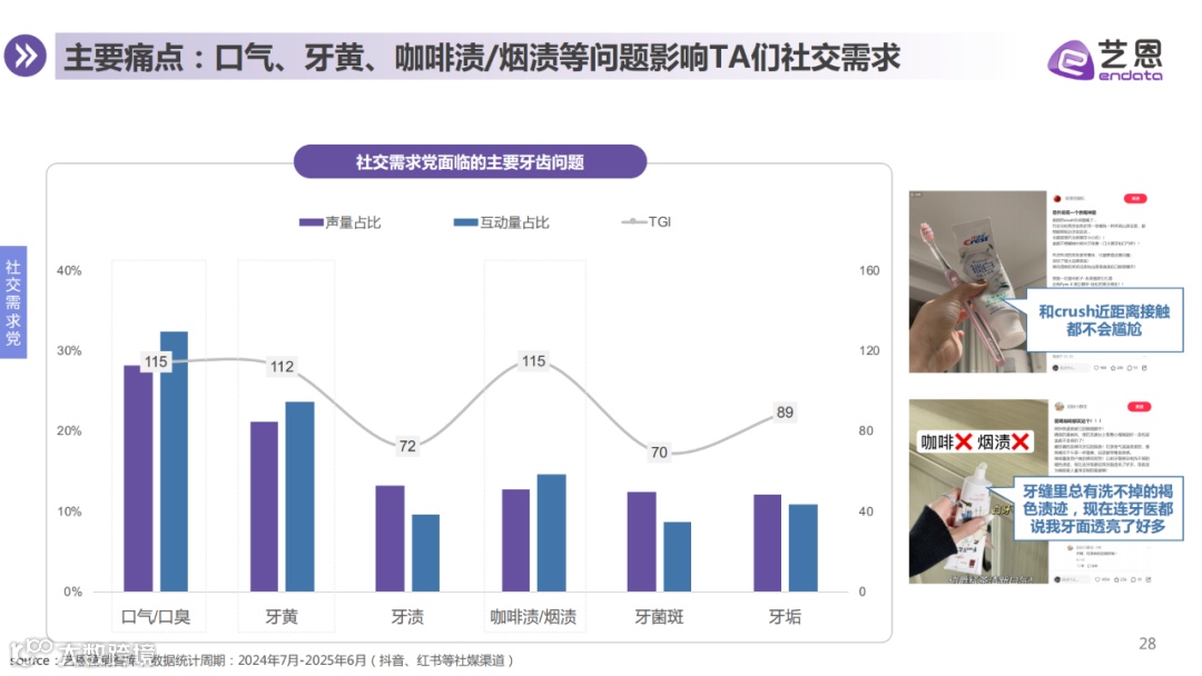注重饮食带来的牙齿染色与口气问题,偏好强效去渍、持久清新类产品,关注即时清洁效果。