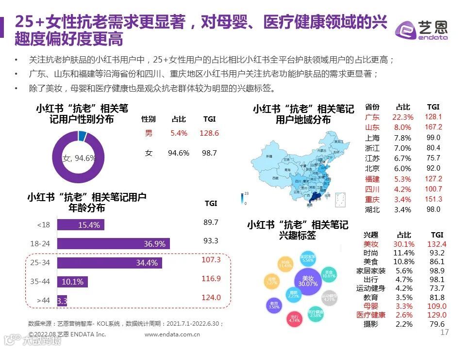 雅诗兰黛、海蓝之谜、兰蔻等高端品牌占据抗老护肤市场主要份额。这些品牌通过小红书、抖音、微博等社交平台开展明星与KOL内容营销,同时布局剧集和综艺软性广告投放,以提升曝光度、知名度及用户规模。