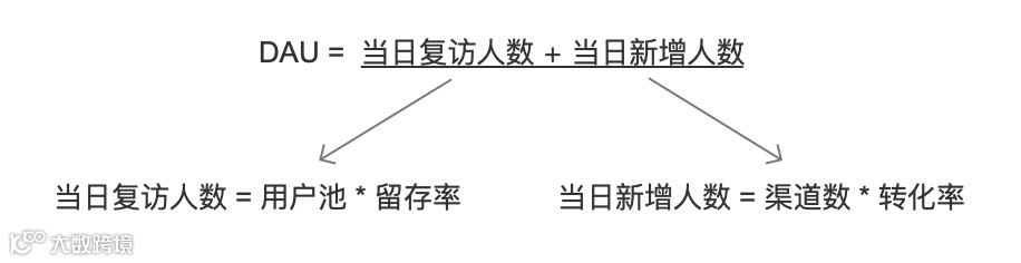文章框架:围绕DAU目标,进行数据公式探讨、数据指标拆解,找到最小参数值,并通过产品策略的规划,找到每个最小参数值如何做大的路径和方案。