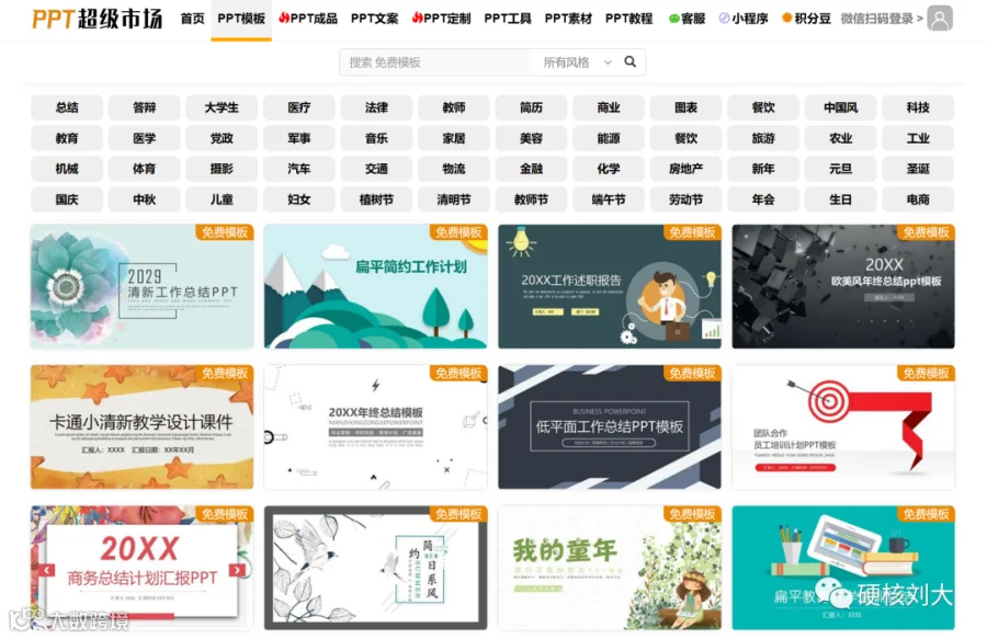 这个网站提供的所有资源都能完全免费下载,而且它的风格很多,能够满足各行各业,各个节假日的PPT制作需求。风格包括手绘风、创意风、简约风、卡通风、欧美风、清新风等等。