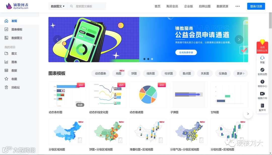 镝数图表是一个0门槛的图表制作工具网站,它可以轻松地把数据表格变成图表、再把图表整合成工作报告。