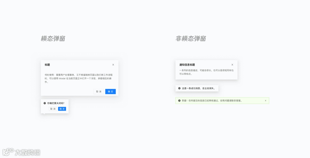 对话弹窗、表单弹窗分、分步弹窗等;