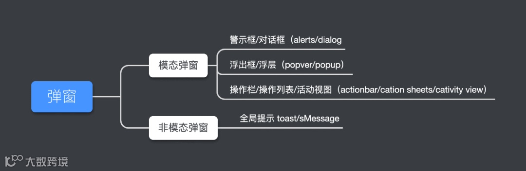 常见非模态弹窗有: